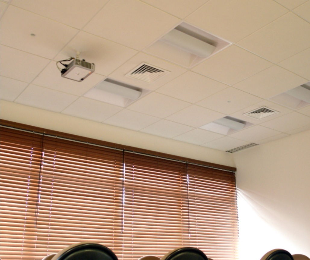 A composição do forro em lã de vidro unida ao PVC microperfurado faz com que tenha ótimos índices de absorção e isolamento, promovendo o conforto acústico e térmico de ambientes com ótima performance.